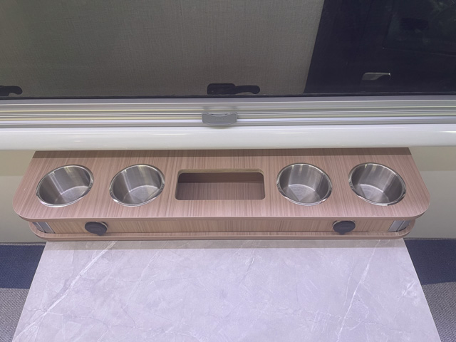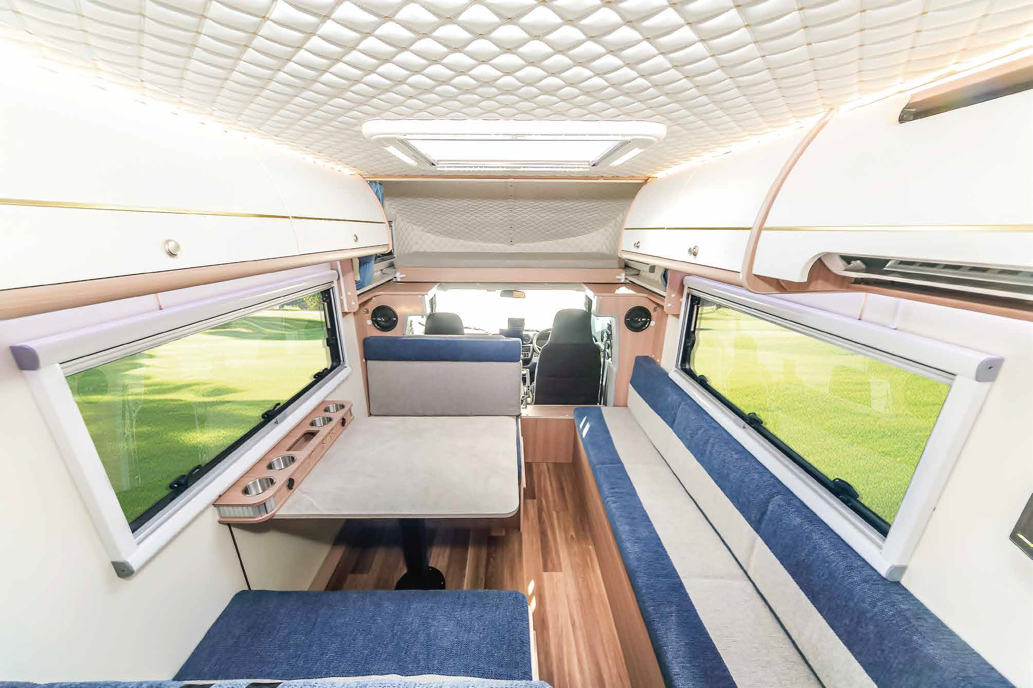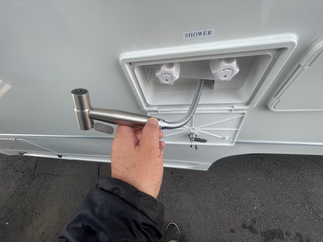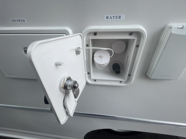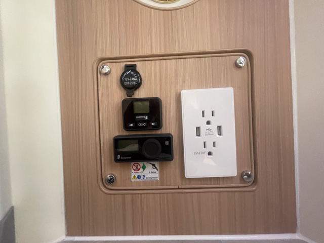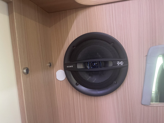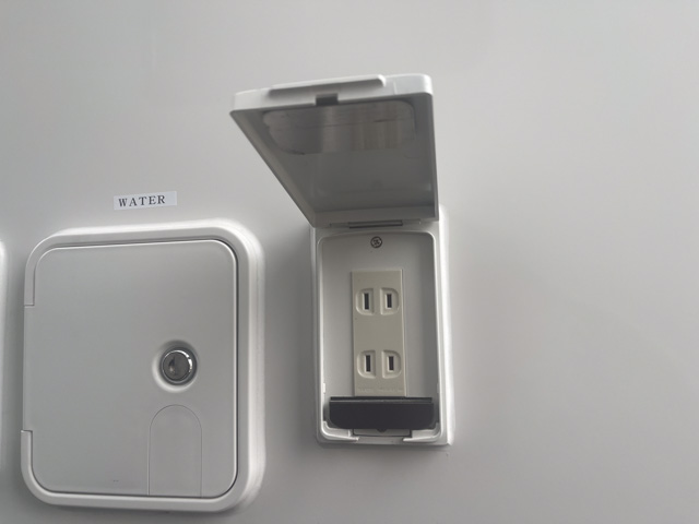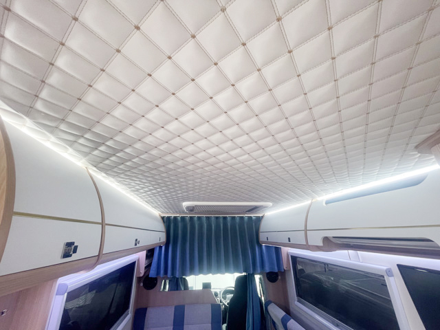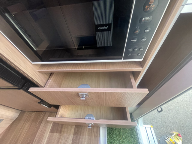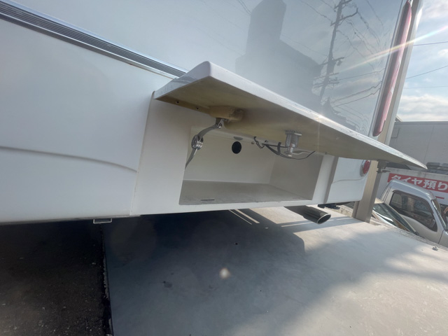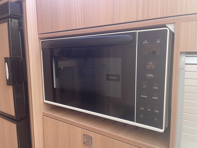 | 標準装備 | フロント+リアスタビライザー、リアサスペンションロングテーパーリーフ、130Aオルタネーター、100Vホームエアコン(三菱霧ヶ峰)、 ヘッドランプクリーナー、熱線入電動格納ミラー、キーレス連動式エントランスドア、後席TV+フルセグチューナー、アラウンドビューモニター、 ドライブレコーダー、外部充電コード、4000AHリチウムイオンバッテリー、3000Wインバーター、FFヒーター(Eberspacher)、シャワー付マルチルーム(マックスファン付)、 給湯システム、108L冷蔵庫、電子レンジ、外部シャワー |