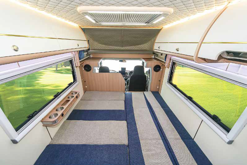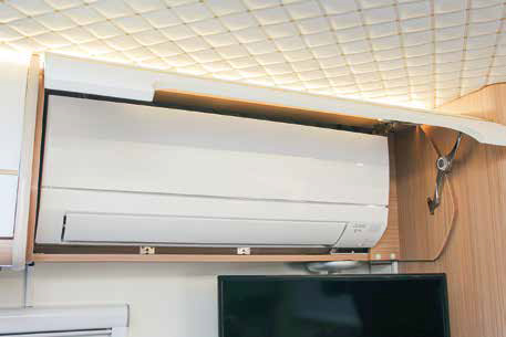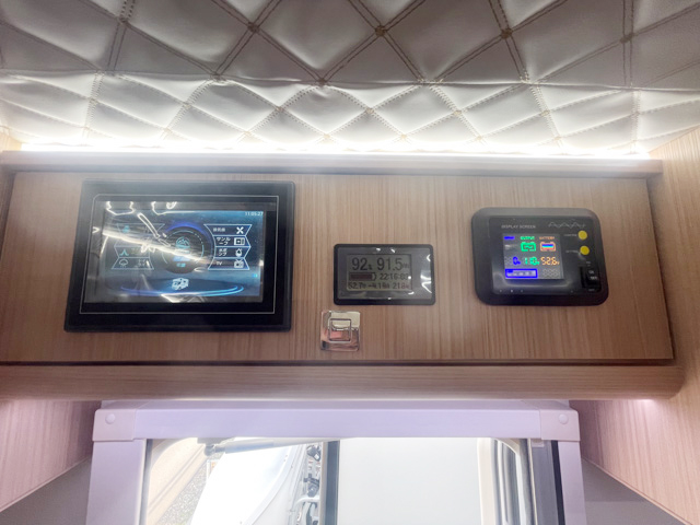 400Ahリチウムサブバッテリー、家庭用エアコン、温水シャワー付きマルチルーム、3000Wインバーター、400Wソーラーパネル、アラウンドビューモニターなどが備わっています。
