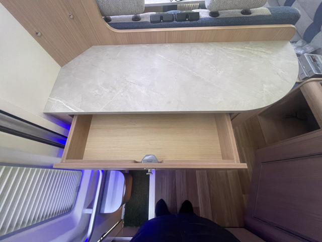 DISCOVERY1の魅力は、一目見ればわかるその美しいデザインにあります。流麗なフォルムのキャブコンバージョンでありながら、都会の街並みにも自然に溶け込むスタイリッシュなエクステリアが特徴です。また、室内は職人の手で作り込まれた高品質な家具が並び、温かみのある間接照明が落ち着いた空間を演出。まるで高級ホテルの客室にいるかのような感覚で、車中泊の概念が大きく変わるはずです。