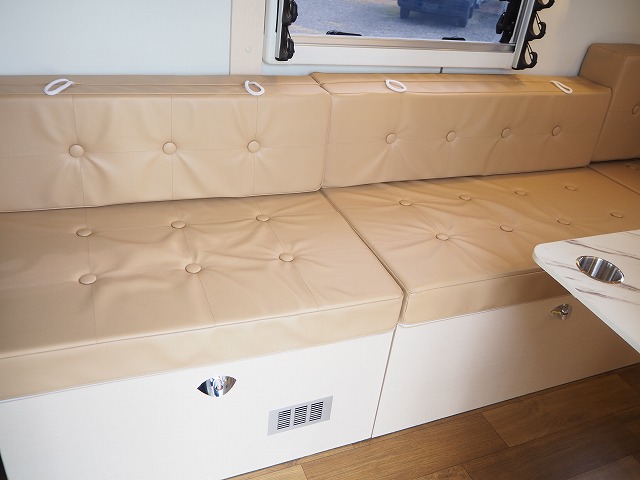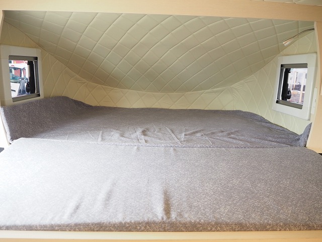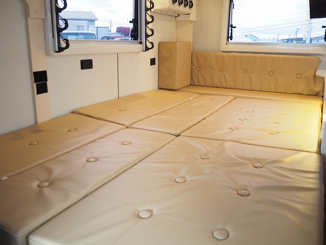 ふかふかのベッドはわずか10秒で展開可能で、分割式のため、ベッドの一部だけを展開してテーブルを囲んだソファとしても利用できます。