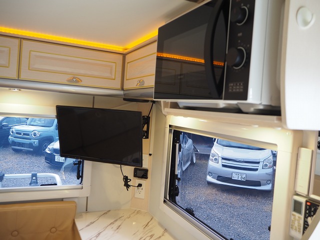 地デジ放送が視聴可能なテレビ、冷蔵庫、電子レンジ、大容量の収納棚などが備わっています。