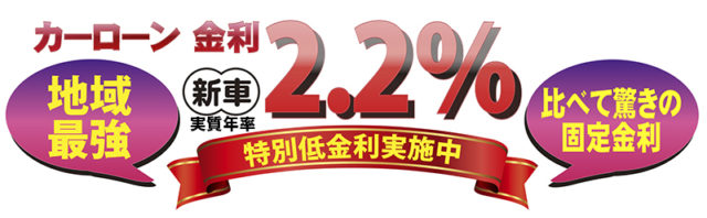 オートサイトで利用の多い中古車マイカーローンでは地域で最低の2.8%(実質年率)です。
